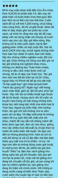Vào năm lớp 8, mình suýt bị cho ra khỏi lớp vì không đạt yêu cầu môn Toán. Với nỗ lực và sự giúp đỡ của quý nhân, mình đã thi đậu vào ĐH Bách Khoa Sài Gòn, rồi mình có bằng thạc sỹ ĐH Liege (Bỉ), Tiến sỹ ĐH Kỹ Thuật Delft (Hà Lan), làm nghiên cứu viên ở ĐH John Hopkins (Mỹ) và ĐH Cardiff (Anh), và hiện nay là giáng viên ĐH Monash. Từ năm 2016 đến nay, mình đã tự học lại toán từ số 0. Trong cuốn Toán Học Chân Phương, mình sẽ chia sẻ tất tần tật những gì mình học được về Toán, Lý, lập trình, và những thất bại, cũng như những thành công, những cuốn sách hay mình đã đọc trong suốt chặng đường kể trên. Cuốn sách, dày 2000 trang, có thể xem là nhiều cuốn gộp lại; và mình có tham vọng nó sẽ là sách gối đầu giường cho các bạn từ lớp 7 cho đến sinh viên ĐH, học viên cao học và cả nghiên cứu sinh.